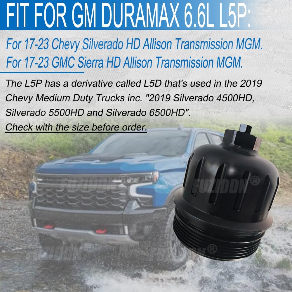 Fuel Filter Housing Cap Replacement for 2017-2024 GM Duramax 6.6L L5P | Compatible with Chevy Silverado/GMC Sierra 2500HD 3500HD | Billet Aluminum OEM 134001 Equivalent with Drain Plug