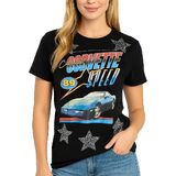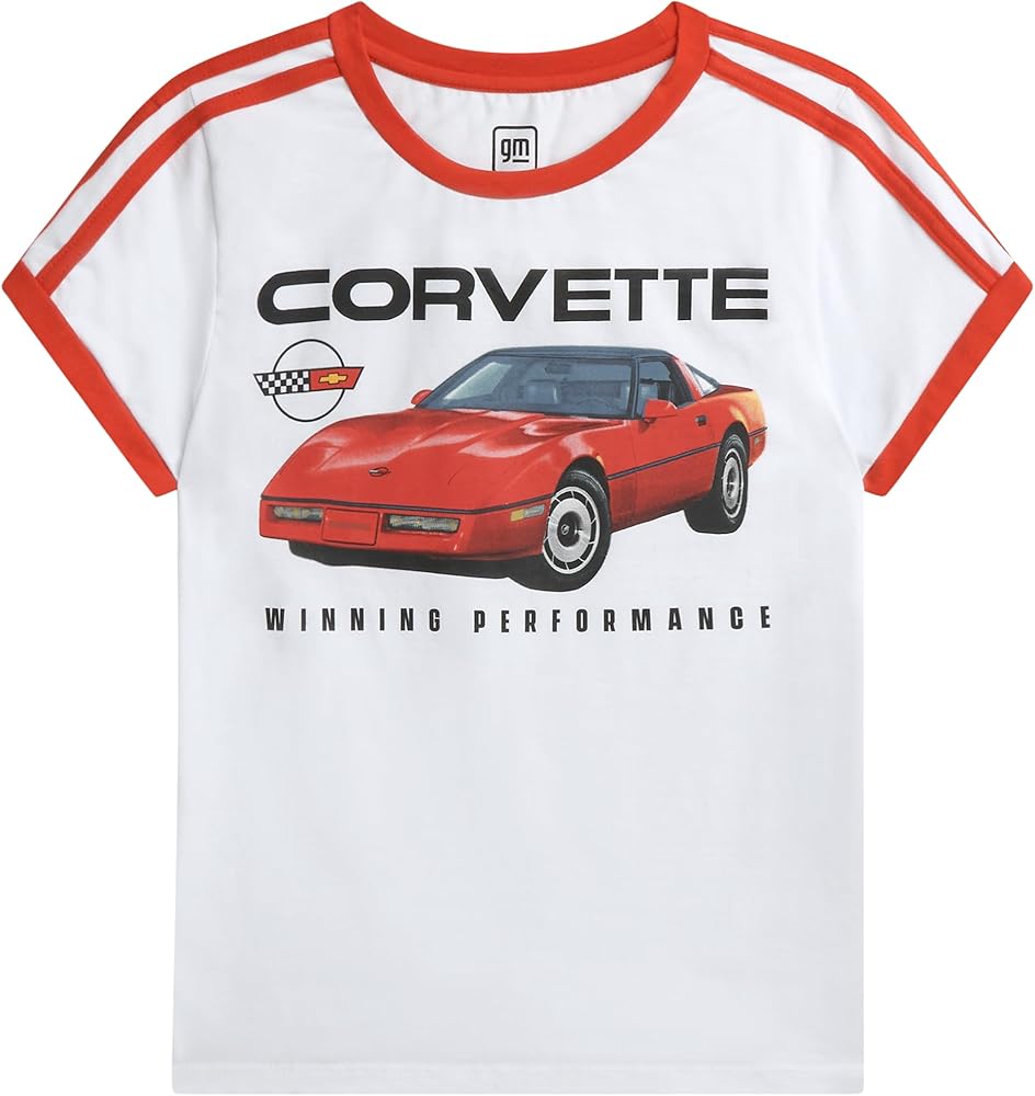 General Motors Women's Graphic Tee - Classic Printed Corvette Chevrolet with Rhinestones Short Sleeve Tee Shirt (Sizes: S-XL) in Kuwait