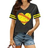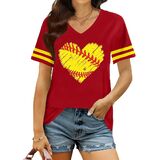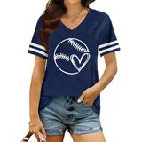 Ithalt Baseball Shirt Women Baseball Heart Graphic T Shirt Baseball Mom V Neck Shirts Baseball Gifts