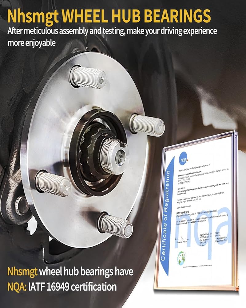 • [Excellent Performance]: The raw material selection for all Nhsmgt wheel bearings follows OE standards strictly. The selected high-quality steel has low impurity content, high hardness, wear resistance and fatigue resistance. Precise roll-form design of Nhsmgt's wheel bearings ensures consistent and optimal factory-installed preload to minimize excessive noise and wear