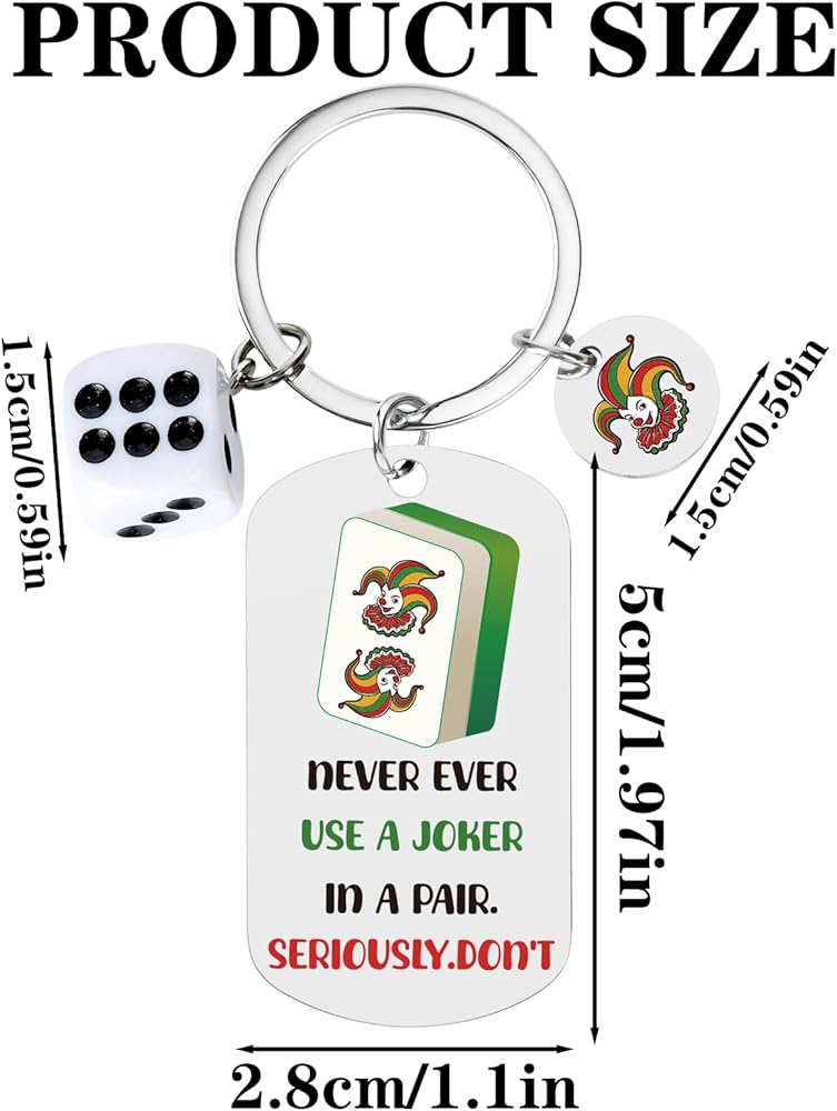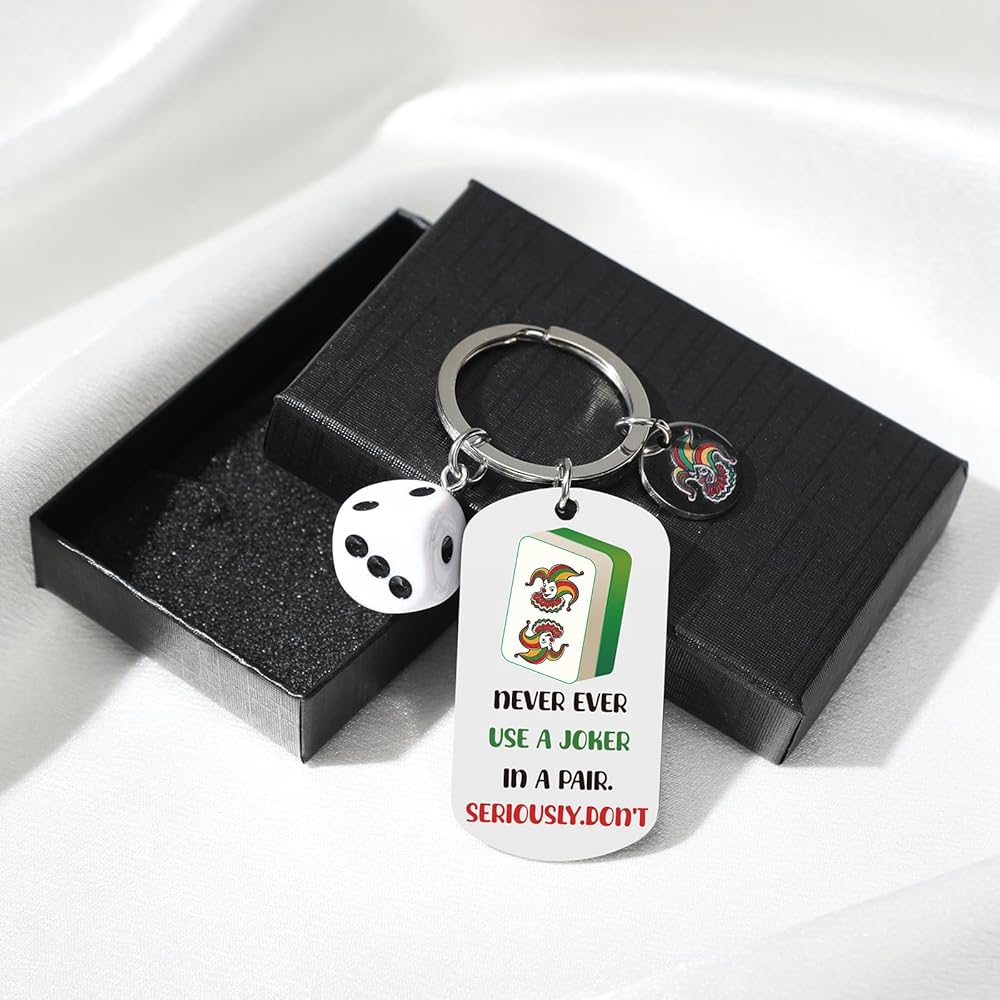 Mahjong Gifts for Women - Never Ever Use A Joker In A Pair Funny Keychains Ideal New Year Bridal Shower Birthday Gift for Men Mah Jong Lover Players Personalized Keyring Accessories Stuffers