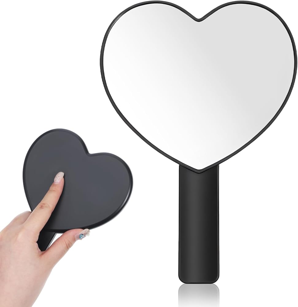 Handheld Heart Mirror, Small Handheld Mirror, Drop-Resistant Hand Mirrors with Handle, Portable Lash Mirrors for Women Valentine's Day Birthday Gift (Black)