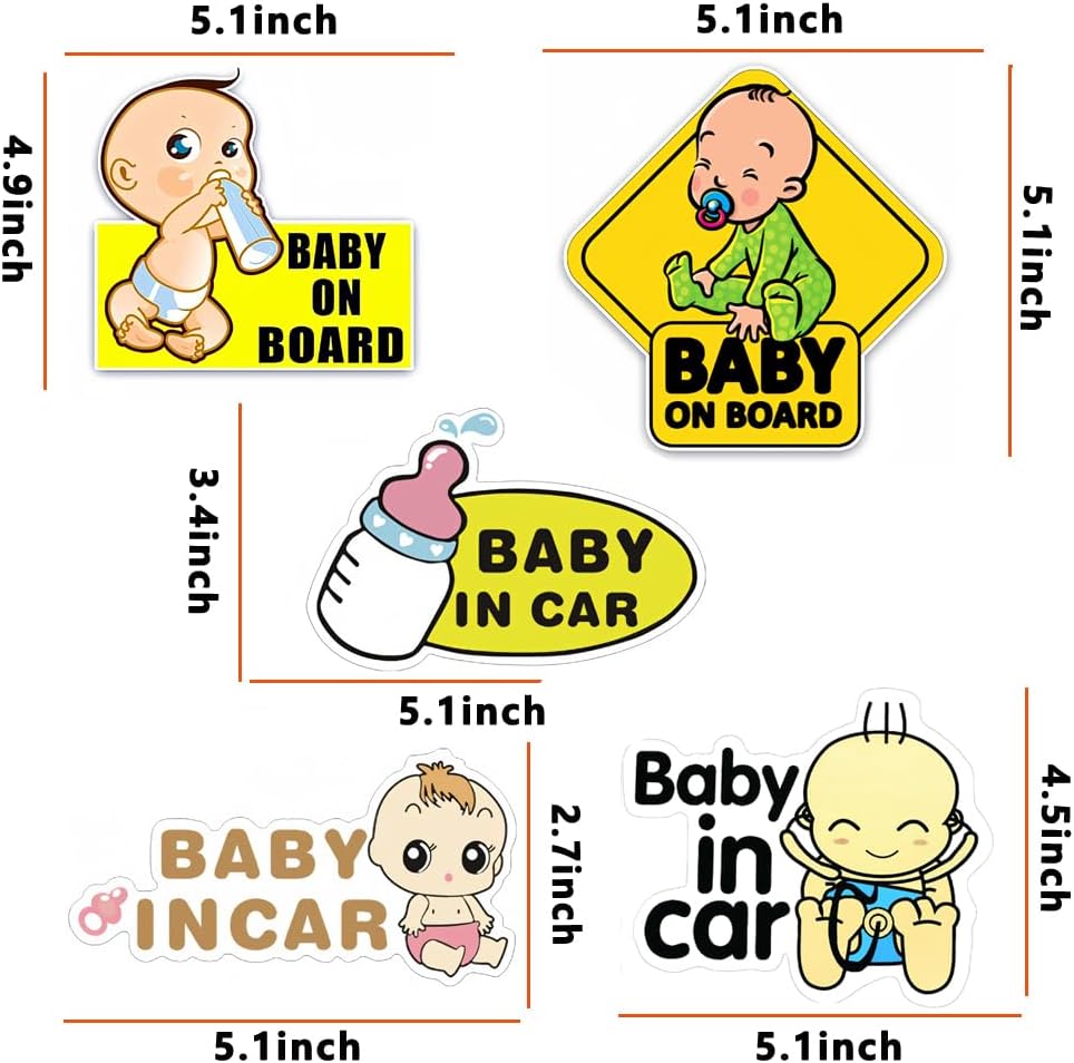 Baby on Board Stickers 6-Pack - Reflective Car Safety Signs for Windows/Doors, Waterproof Baby in Car Decals, Universal Adhesive Warning Labels for Vehicle Body (Durable Vinyl)