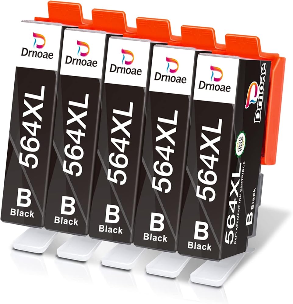 Package Contents: 5 x Black 564 564XL 564 XL, Total 5 Pack( Large Black), replacement for hp 564 xl black ink cartridge(No Photo Black)
