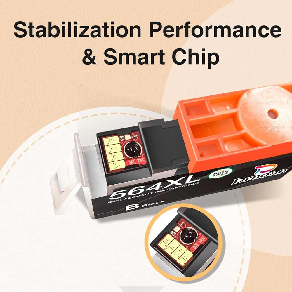 Premium Ink: Drnoae 564 xl black ink cartridges for hp printers, provides clear and vibrant printing effect, which gives you a good visual feast