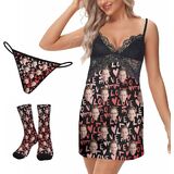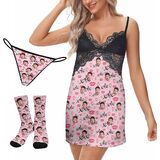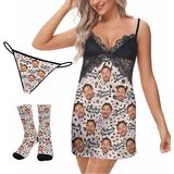 😄【Different Sizes Fit Most People】:The custom face cami pajamas dress provide 6 sizes (“S” - “2XL”),which can meet the needs of most people.( Please choose the size you need based on the length and chest width in the chart).