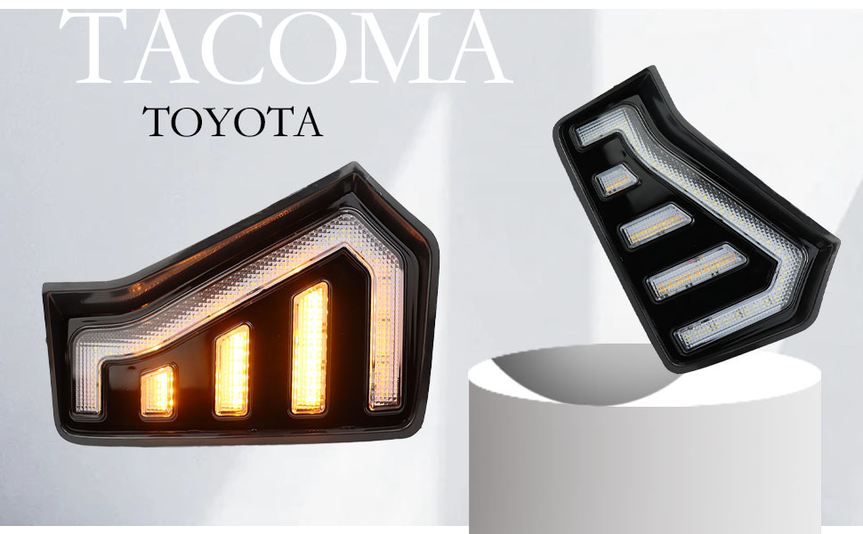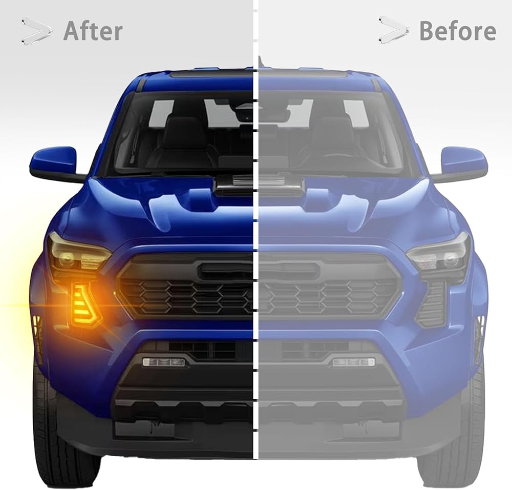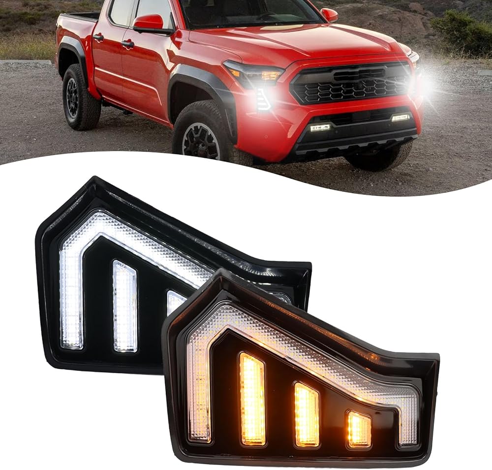 LED Front Headlight Side Marker DRL Amber Sequential Turn Signal Fog Light Feature Kit for Toyota Tacoma 2024 Replacement Grille Cover Air Vent Trim Accessories