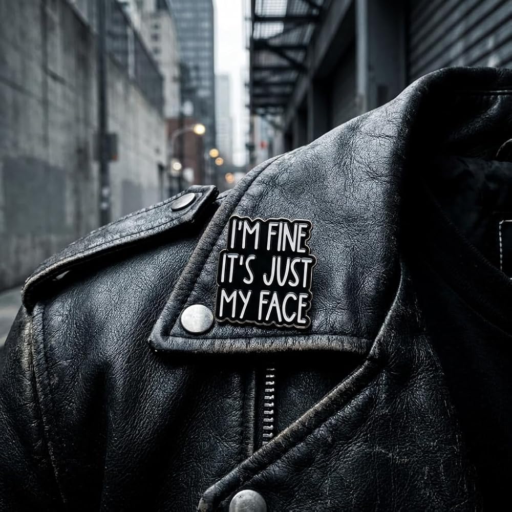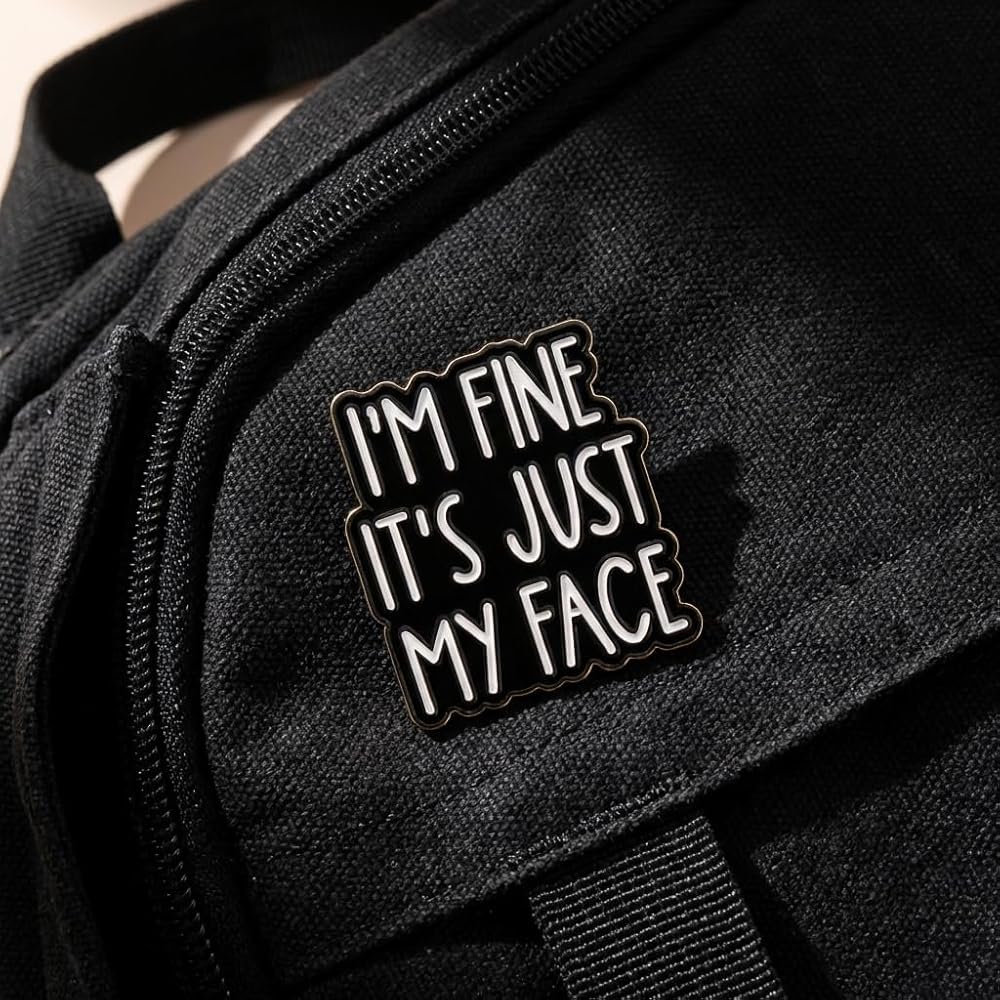 Elevate your accessory game with our "I'm Fine It's Just My Face" Enamel Pin, the ultimate statement piece for anyone who mastered the art of the deadpan stare. Crafted from high-quality eco-friendly metal with a sleek black and white contrast, this durable brooch is built to withstand the rigors of daily life. Whether you are looking to customize your favorite denim jacket or searching for the coolest pins for backpacks to showcase your dry sense of humor, this lapel pin delivers. It serves as a hilarious icebreaker and a relatable badge for introverts and sarcasm lovers alike. The secure backing ensures it remains a permanent fixture on your gear, making it a reliable and stylish addition to your collection of backpack pins and funny enamel pins.