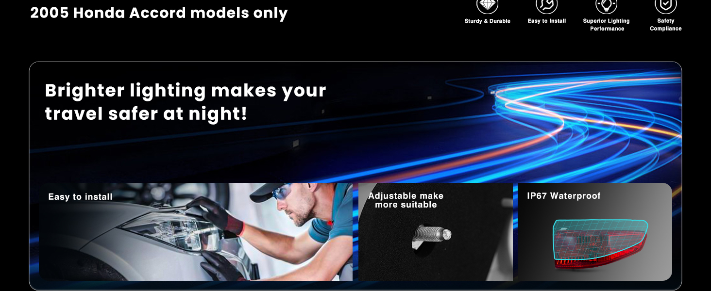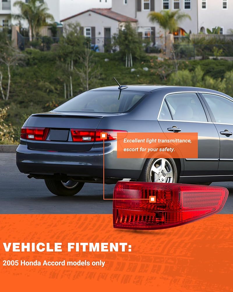 【Vehicle Compatibility】Our taillights are compatible with the following vehicle models:2005 Honda Accord 4 Door SedanTaillight.(Bulbs are not included)Double-check your vehicle's trim and factory light type to ensure a match—avoid wrong purchases!Part Numbers#33501SDAA11