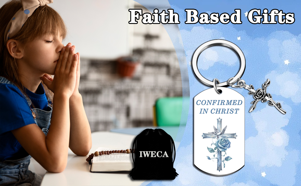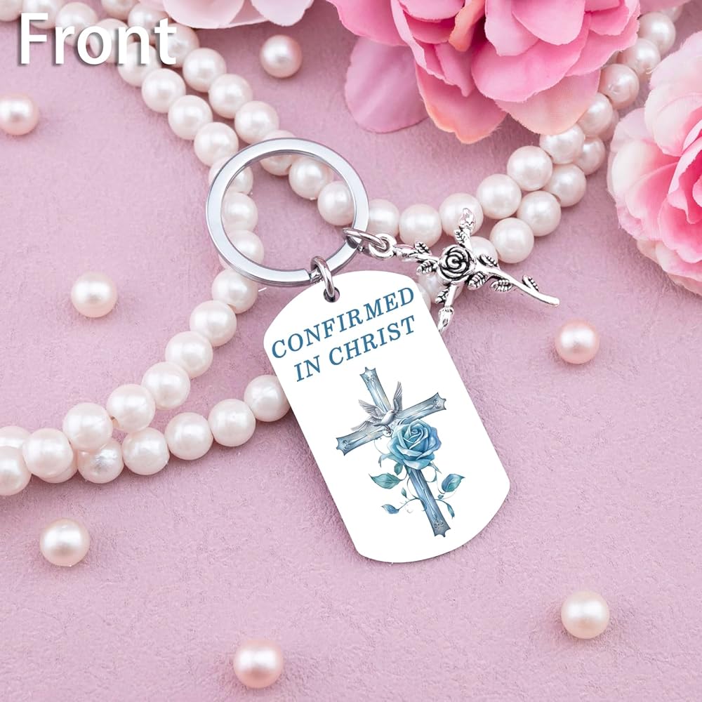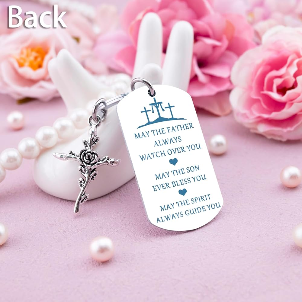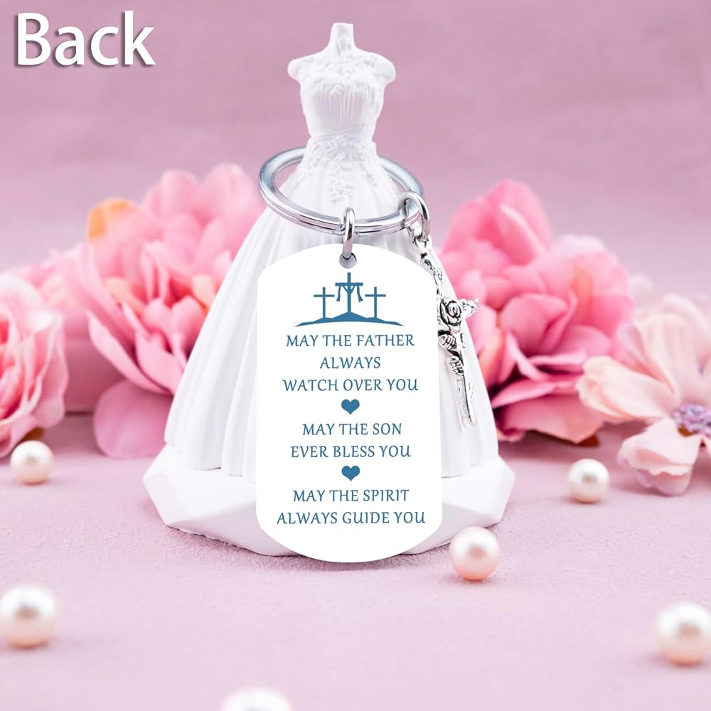 Bible Verbe Keychain/Confirmation Gifts: The baptism christian keychain is painted with “confirmed in christ, may the father always watch over you, may the son ever bless you, may the spirit always guide you” and a delicate cross accessories. If you would like to choose a gift that the confirmed will be able to keep forever, our useful keychain would make a good gift choice