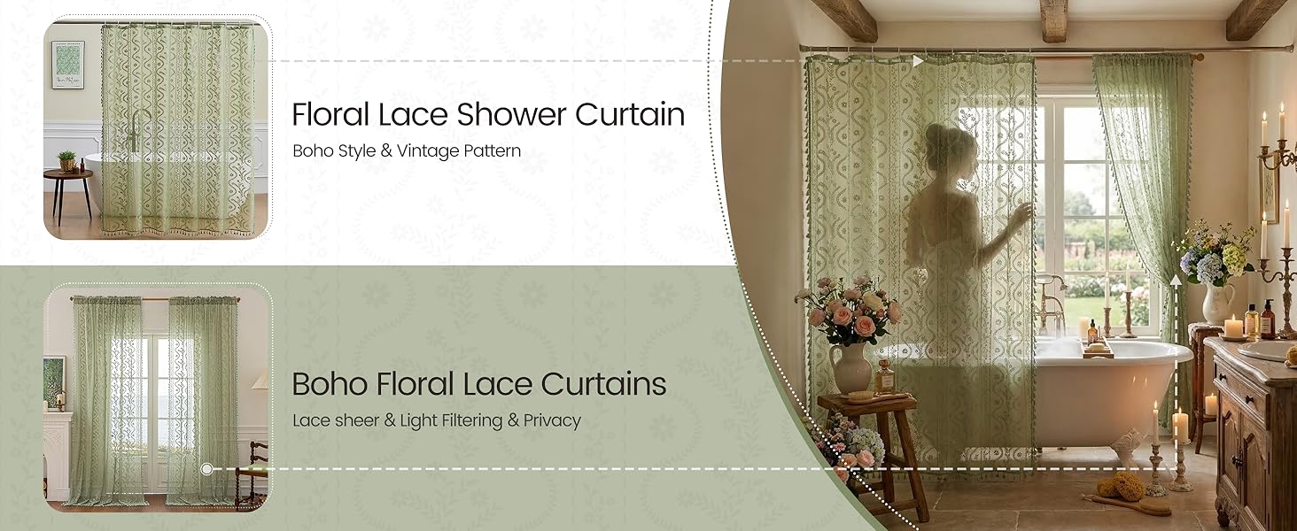 Durable Polyester Boho Curtains:Made of 100% polyester with nice drape,recyclable and environmentally friendly fabrics,resists fading, wrinkles, and shrinkage better than pure natural fibers.Seamlessly blends bohemian floral pattern with victorian aesthetics,durable for long time to use