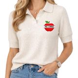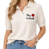 The Grewear Custom Embroidered Teacher Sweater is a functional and professional choice for educators. This Personalized Teacher Polo Short Sleeve Sweater provides a structured look suitable for classroom environments, blending the comfort of knitwear with a formal polo design.