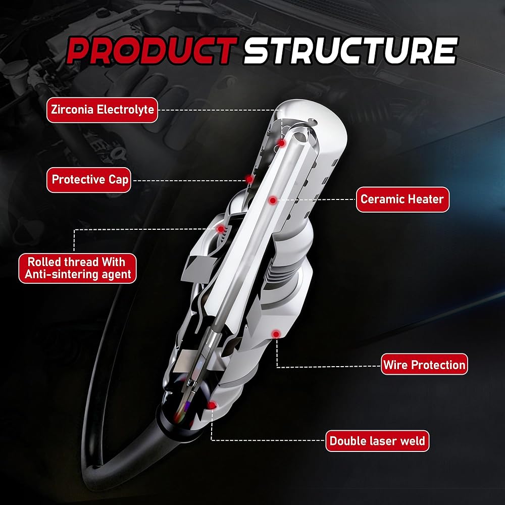 【Better Peformance】Our oxygen sensors are meticulously crafted from high-temperature-resistant materials, delivering fast and precise measurement, also improve fuel performance. The dual laser-welded stainless steel body ensuring long time stability.