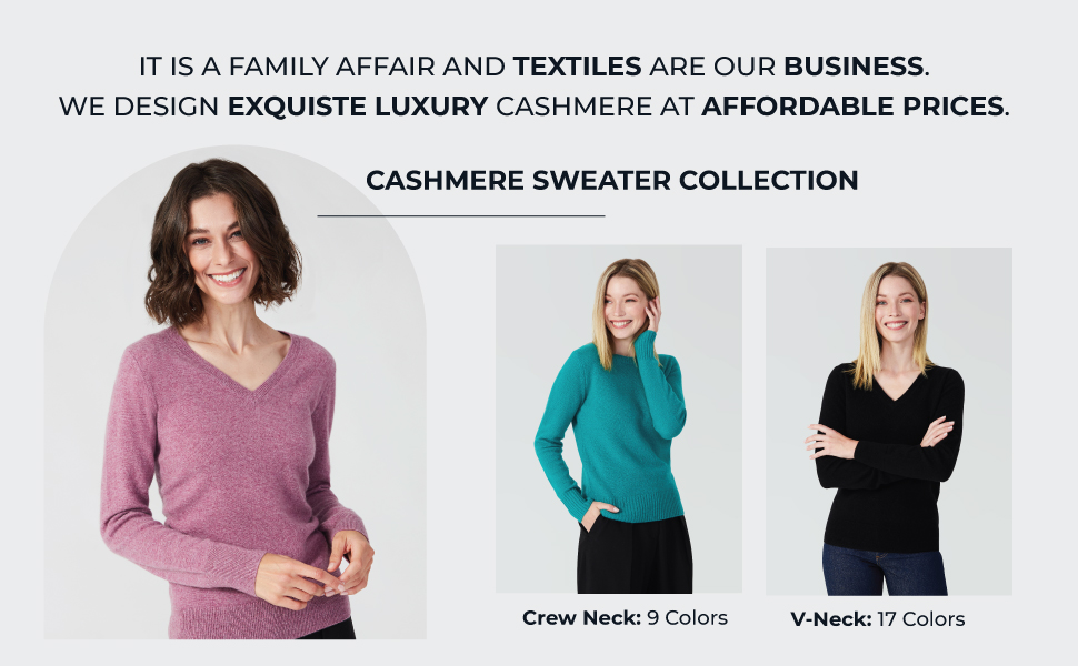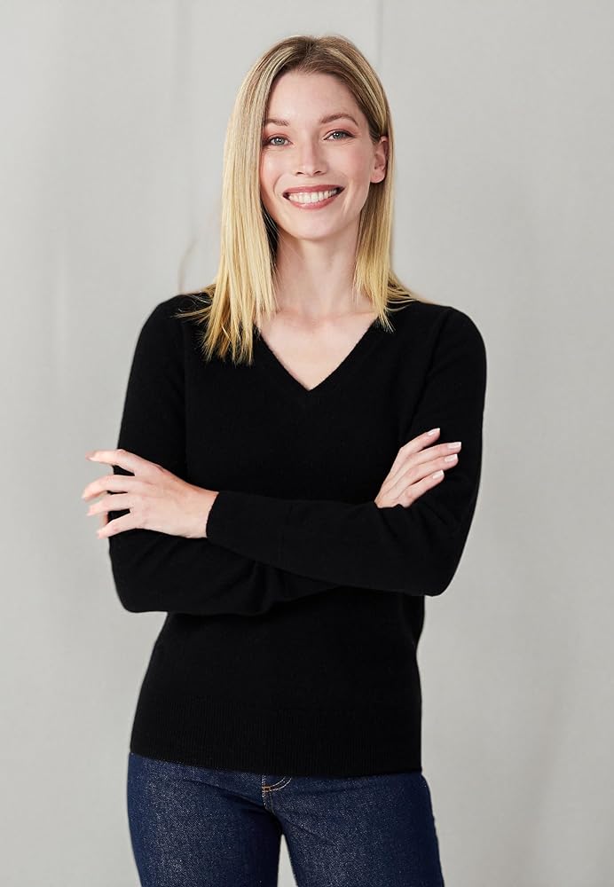 100% Pure Cashmere Long Sleeve Crew Neck Sweater for Women