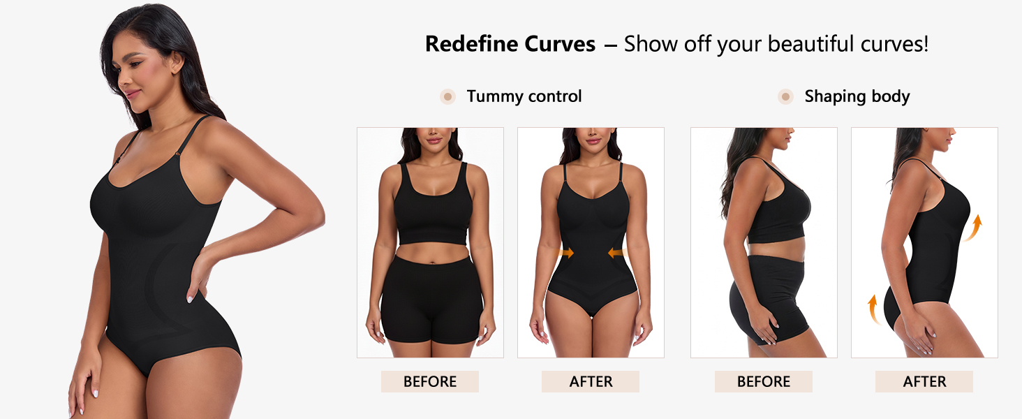 【Sizing Tips】Follow our size chart and measure your bust, waist, and hips. When you first try on the bodysuit, it might look smaller than expected—but don't worry! It's intentionally crafted from super-stretchy, high-elasticity fabric that's soft and breathable. You won't feel squeezed or restricted; instead, it'll hug your curves perfectly and sculpt your figure beautifully.
