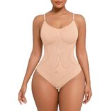 【Adjustable strap and 3 hooks】This seamless shapewear bodysuit with adjustable straps, while the v-neck flatters your décolletage while providing spill-free shaping, adding a touch of allure, its compression can help you to tighten your bottom and lift up your butts, not strong but very comfortable, make your hip look bigger, more charm. Besides thathis tummy control shapewear has 3 adjustable hooks , which is very convenient and comfortable for you.