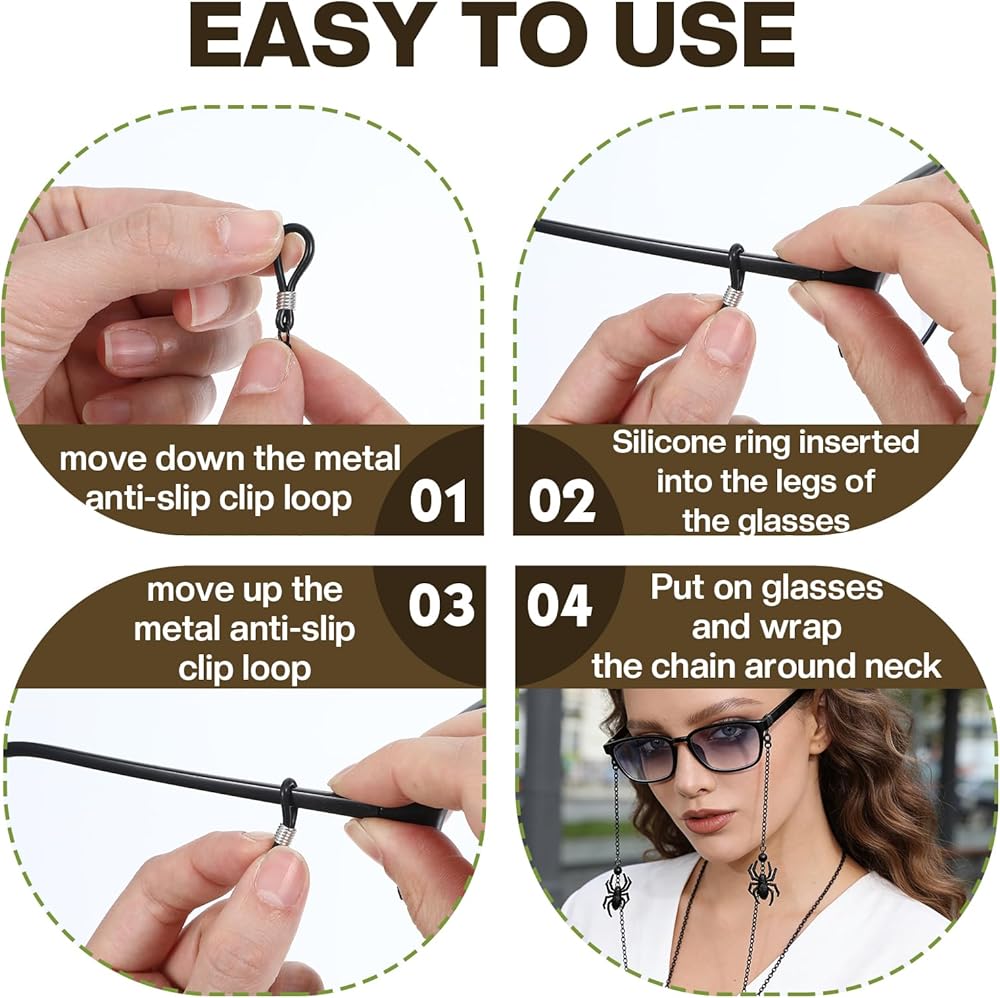 • Versatile Use: These eyeglass chains are designed to fit various eyewear styles, offering a practical solution to keep your glasses secure and within reach