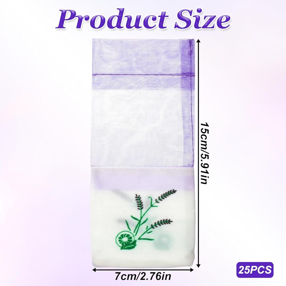 【Complete Package】The package includes 25 pieces of purple sachet bags with coordinating ribbons, providing ample quantity for multiple uses and replacements. Each bag measures 15cm x 7cm (approximately 5.9 x 2.75 inches), offering generous capacity for dried lavender or other contents. The consistent size ensures uniform appearance when used for gift-giving or commercial purposes, while the substantial quantity allows for creating multiple scented sachets for different areas of your home.