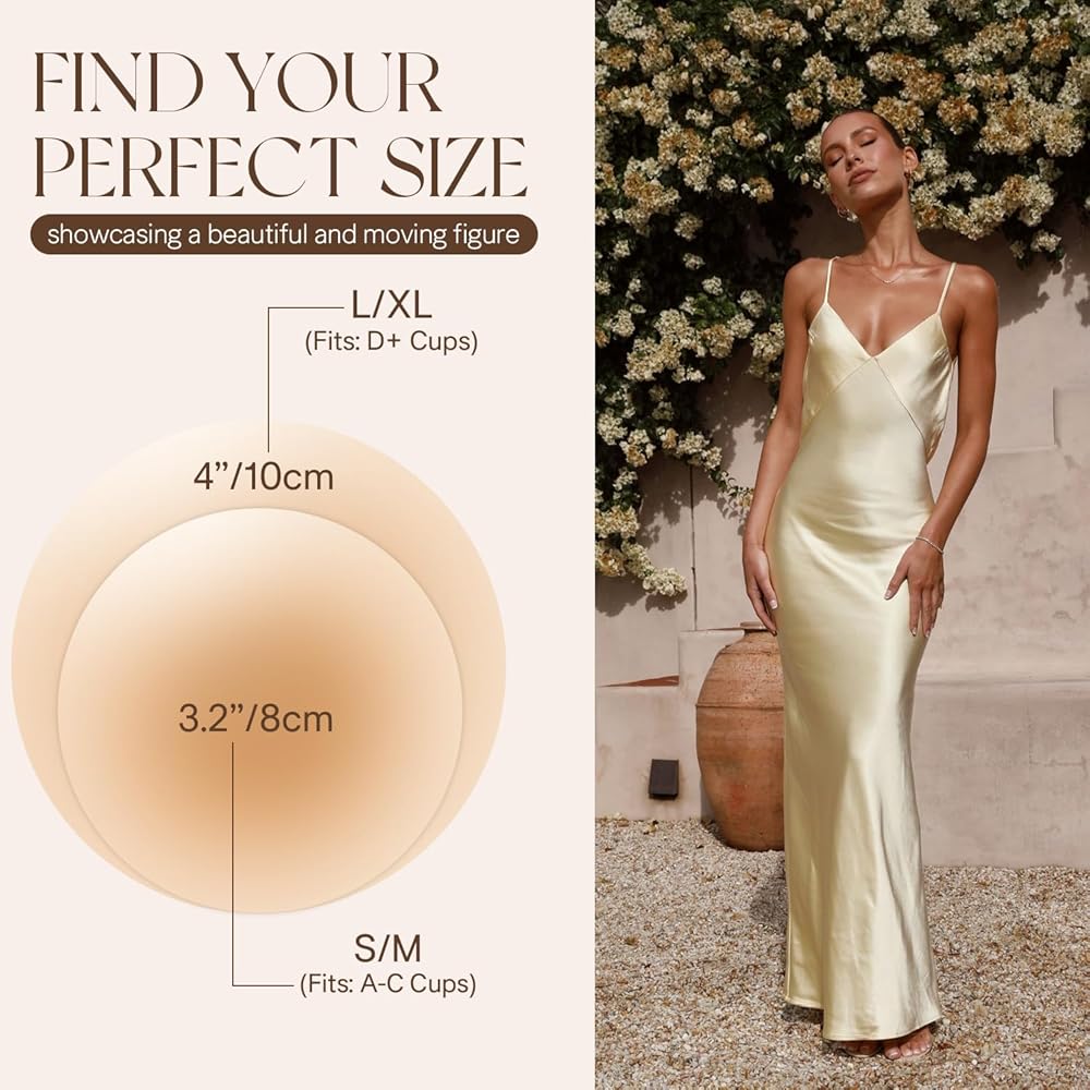 Break Free From Bras:Replace uncomfortable bras with our silicone nipple cover. Comfortable and supportive, it conceals the areola and breast, creating a smooth finish to wear with a backless dress, bridesmaid gown, camisole top, or bathing suit
