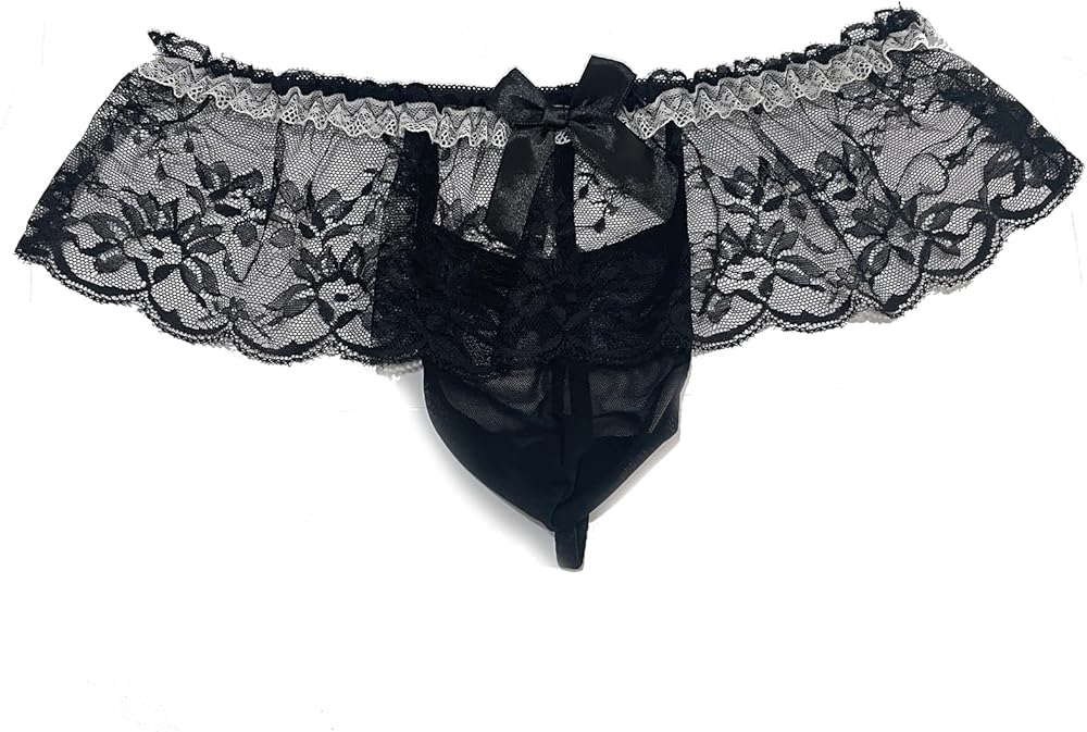 Men's Sexy Lace Frilly Thongs for Crossdressers Sissy Skirted Panties For Men Gay Lingerie