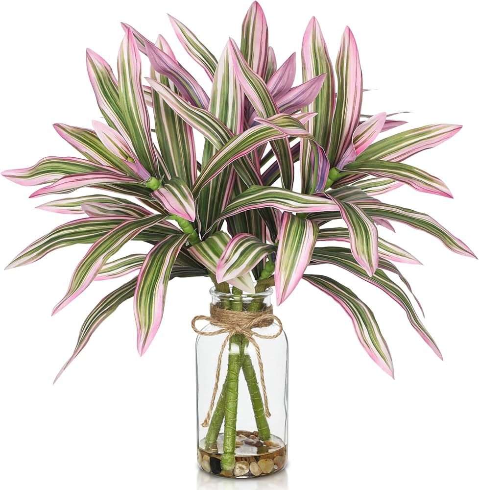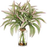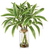 • Potted Plants Artificial Decor - Our greenery arrangement with vase has 3 eye-catching stems, featuring dracaena plant in vivid green & soft white stripes, our lifelike foliage showcases deeply embossed venation and natural edge variations, the whole is staggered and layered. Paired with a transparent glass vase and acrylic faux water, this faux plant delivers the elegance of a living centerpiece
