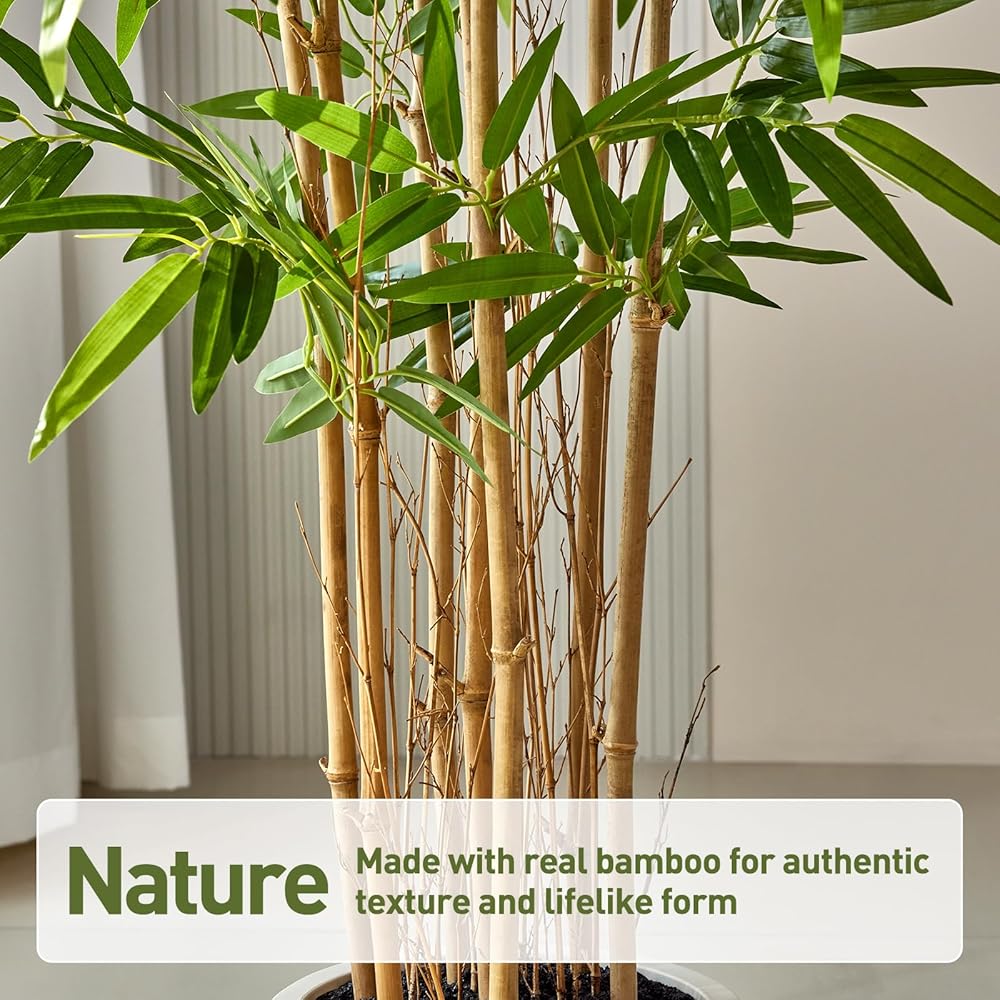 Real Wood Poles for Authentic Appearance Crafted with genuine wood poles, this 6.5FT artificial bamboo tree offers a remarkably realistic look. Unlike ordinary fake plants, the natural wood texture enhances the lifelike quality, seamlessly blending with your indoor plants or standalone deco
