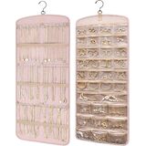 ROOMY CAPACITY - Double-sided hanging jewelry organizer has plenty of space to store jewelry. It's designed with 32 transparent pockets to hold your rings, earrings, bracelets, watches, hairpins or other jewelry. And the other side can accommodate 42 necklaces.