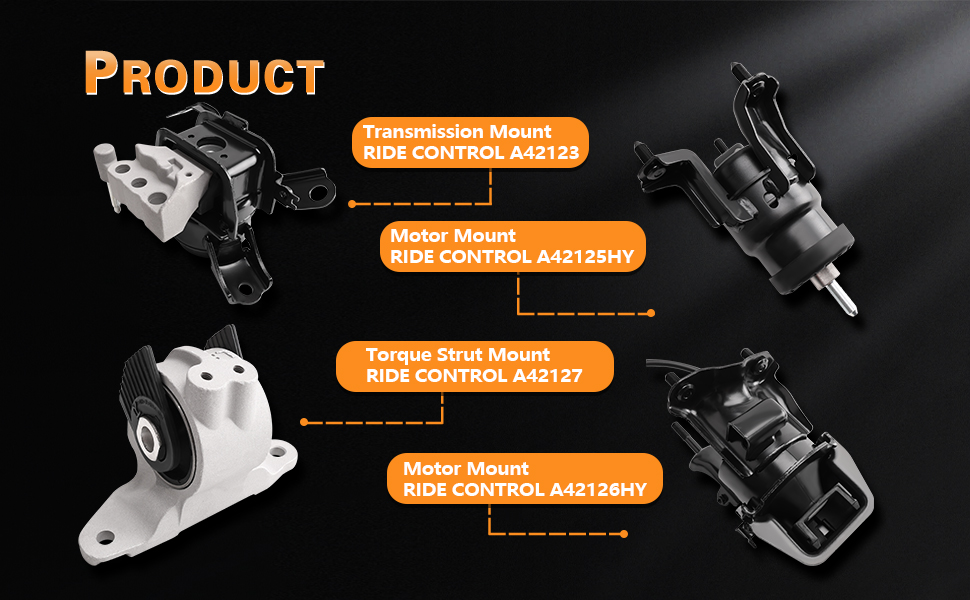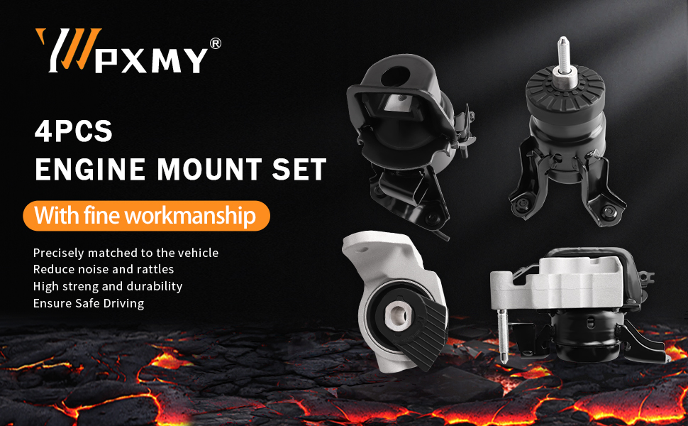 【Package Included】1 x Front Engine Motor Mount, 1 x Front Right Engine Motor Mount, 1 x Rear Engine Motor Mount, 1 x Transmission Mount.