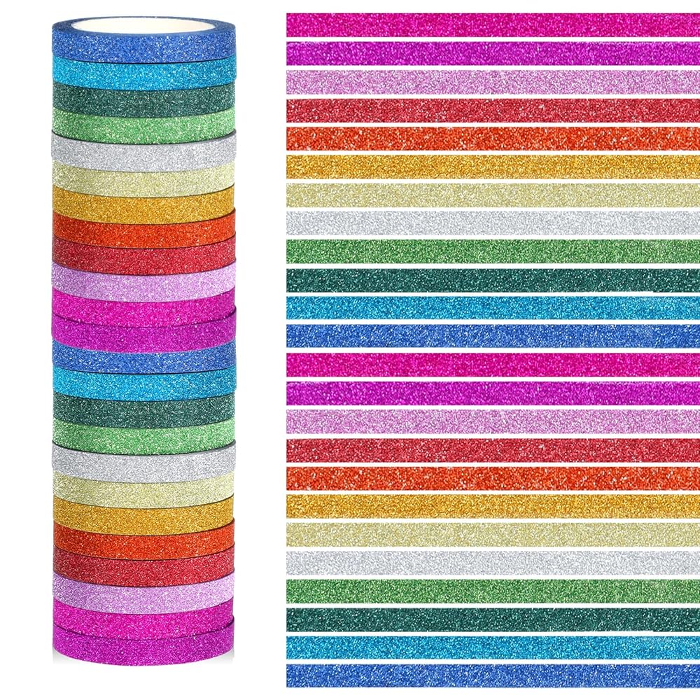 Compact and Practical Dimensions: Each glitter washi tape thin measures 0.2 inches in width and 5.5 yards in length, providing a total of 131 yards across 24 rolls, offering plenty of material for intricate decorations and detailed designs
