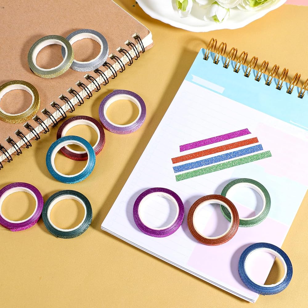 Wide Range of Applications: Ideal for DIY crafts, planners journals, gift wrapping, scrapbooking, card making, and even home decor, these decorative glitter tapes make it easy to personalize and beautify any project