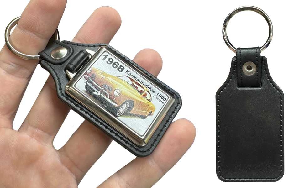 Keychain holder is made of heavy duty leather like material with a chrome frame to make the graphic pop.