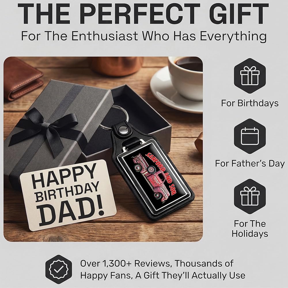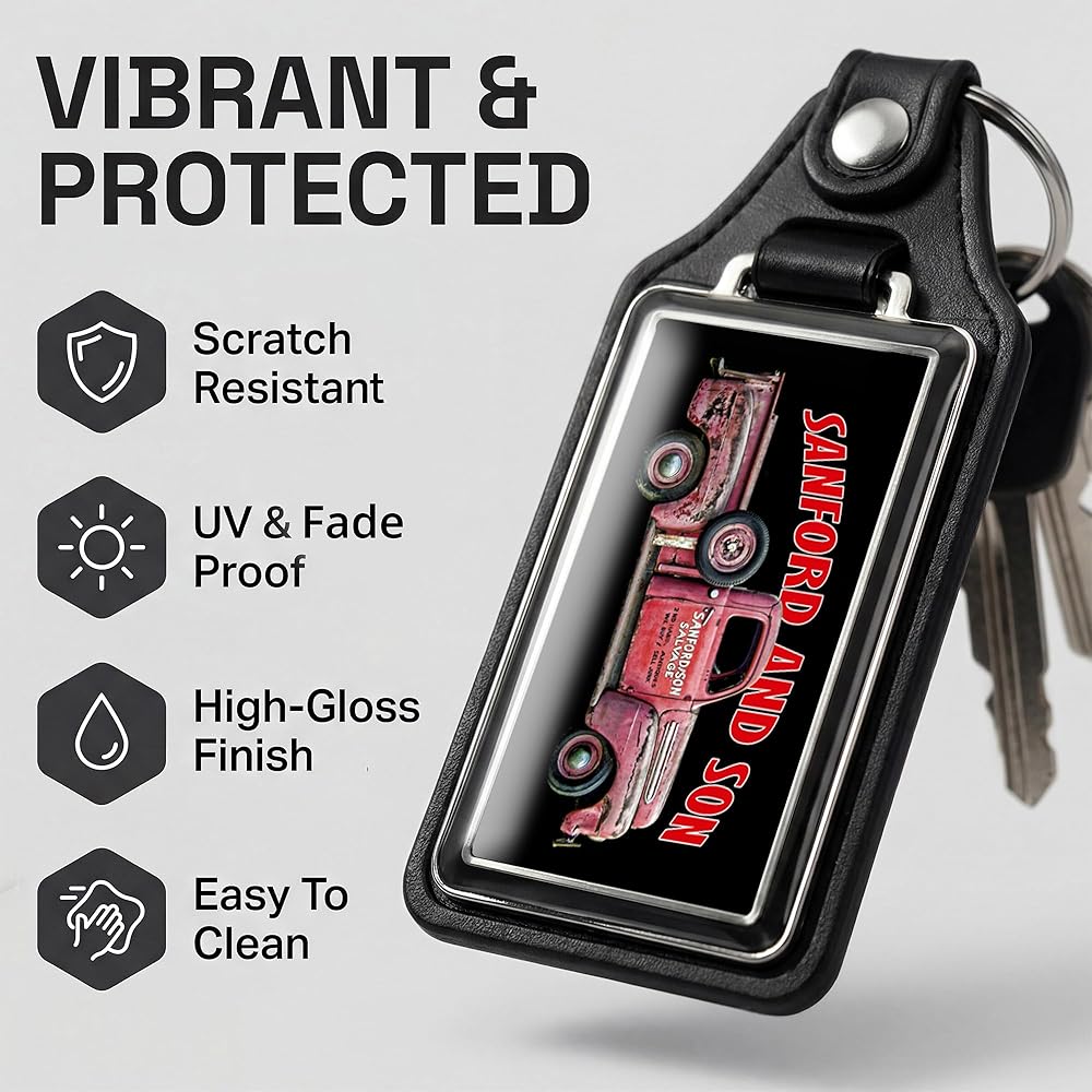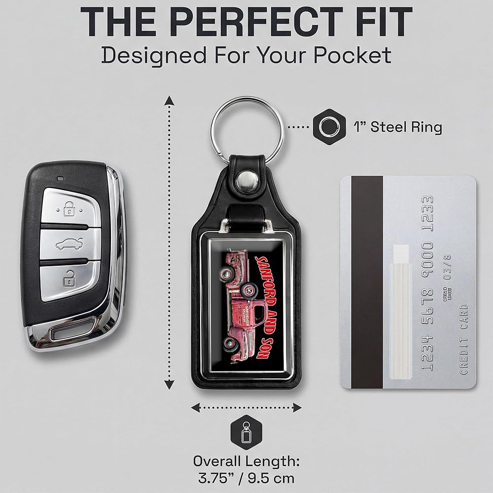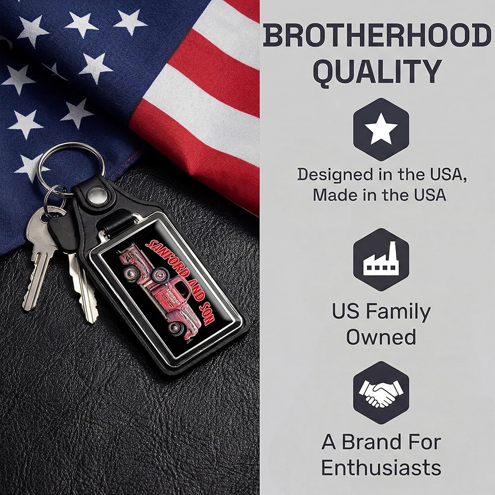 Brotherhood Sanford and Son Salvage Truck Red Antiques Buy Sell Junk Faux Leather Keychain Key Holder Key Ring For Men Heavy Duty Car Keyring For Men and Women