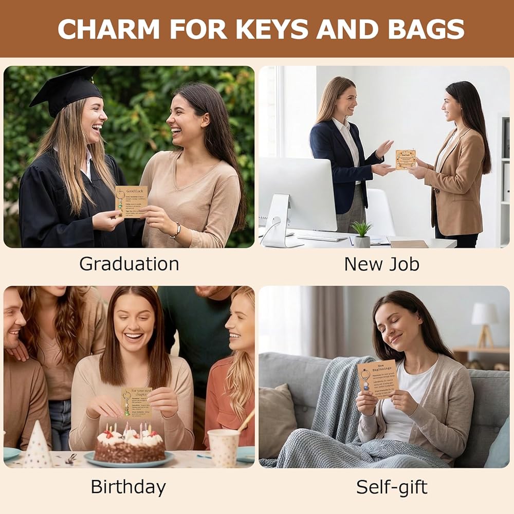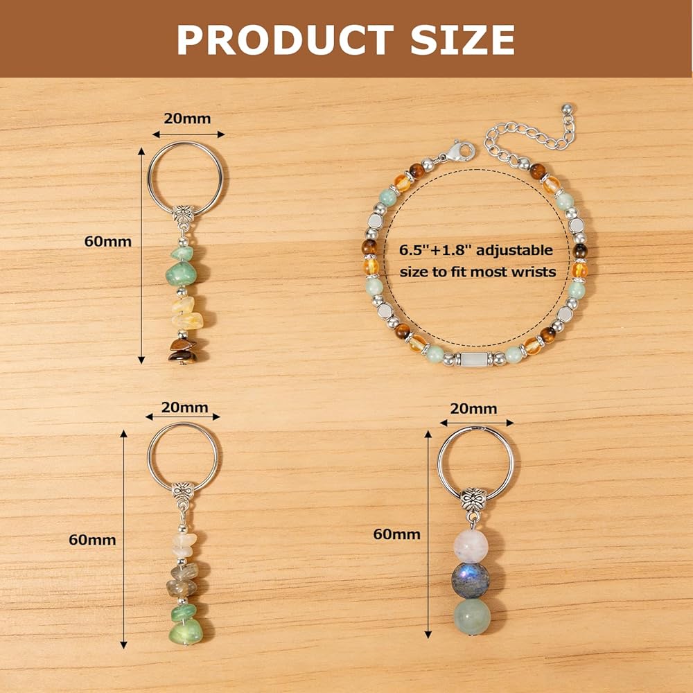 【Complete Gift Set】 Receive 1 handmade natural crystal bracelet (Good Luck) and 3 keychains (Good Luck + New Beginnings designs). Keychains: 2.43”L x 0.78”W charms. Bracelet: adjustable 6.5” + 1.8” extension chain for comfort.