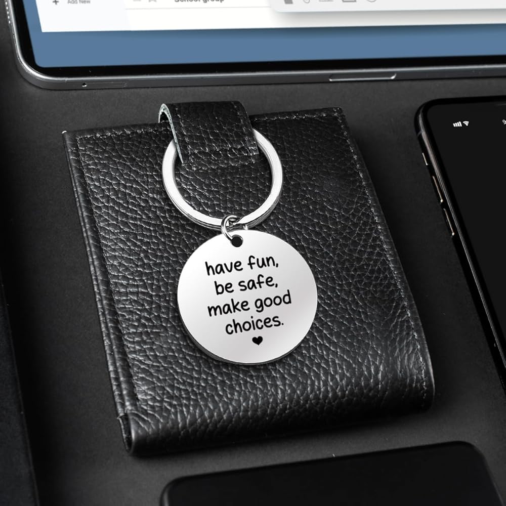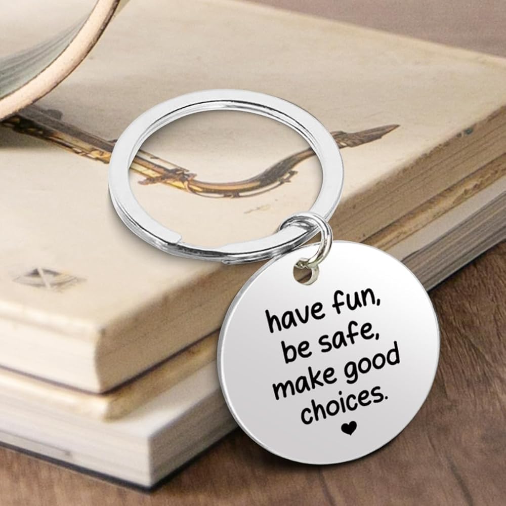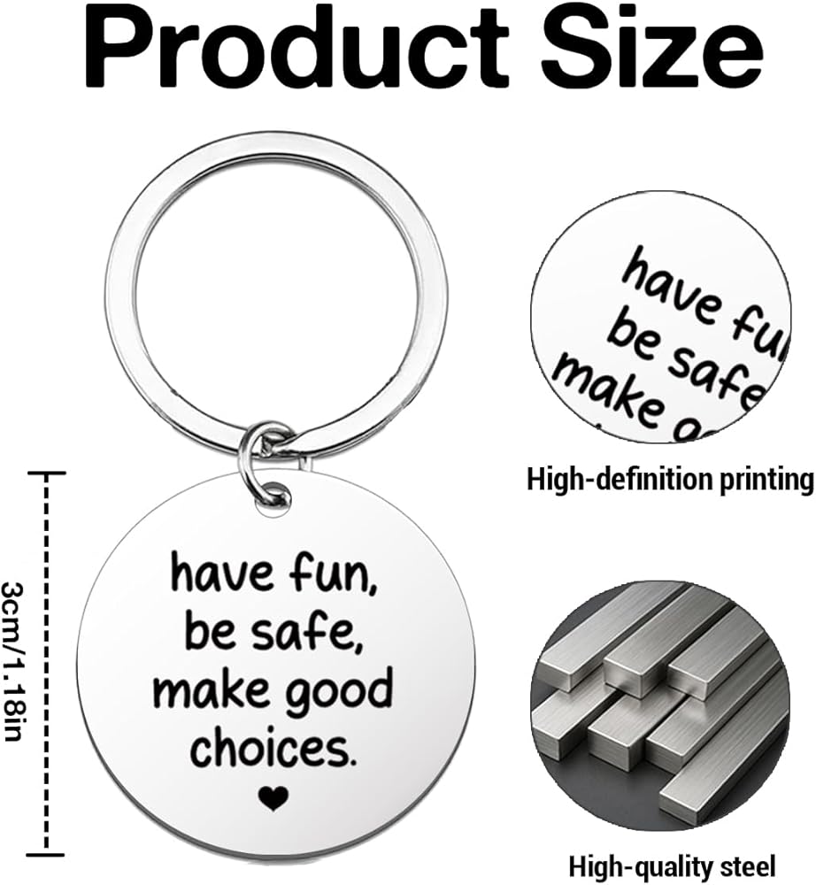 Have Fun Be Safe Keychain Gifts for Son Daughter Christmas Birthday Graduation, Make Good Choices Keyring