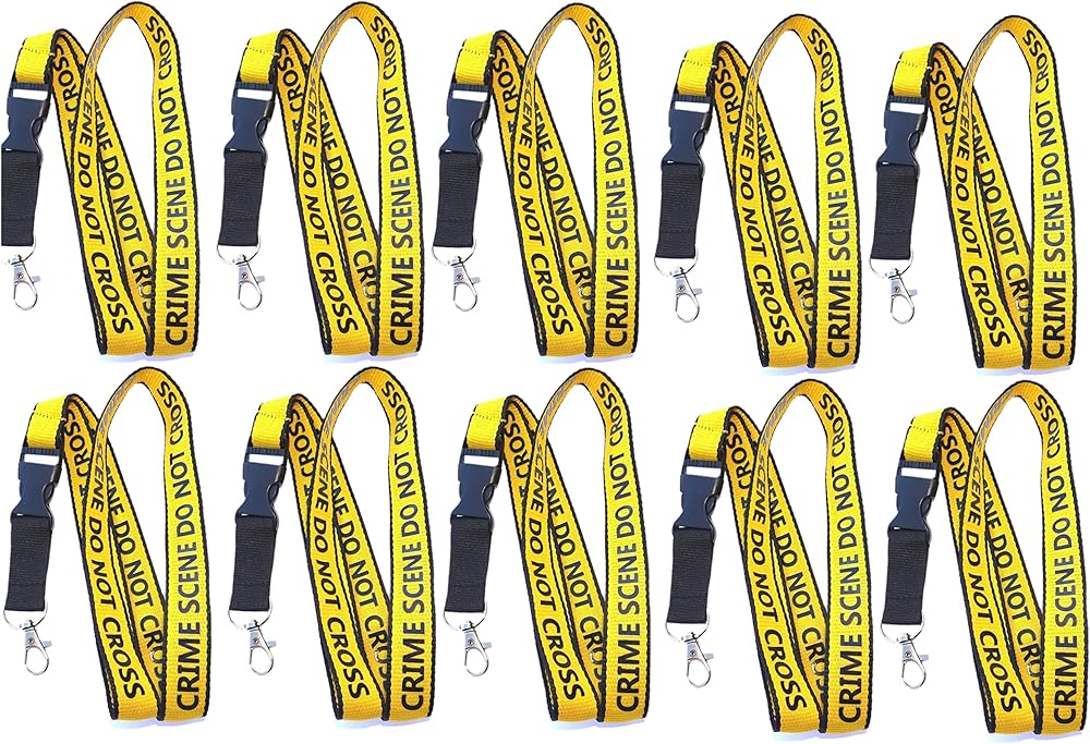 High quality lanyard style with CRIME SCENE theme - black text on yellow band. The lanyard includes a metal loop and clip (lobster claw style) as well as a quick release for when you need to remove your card or badge.