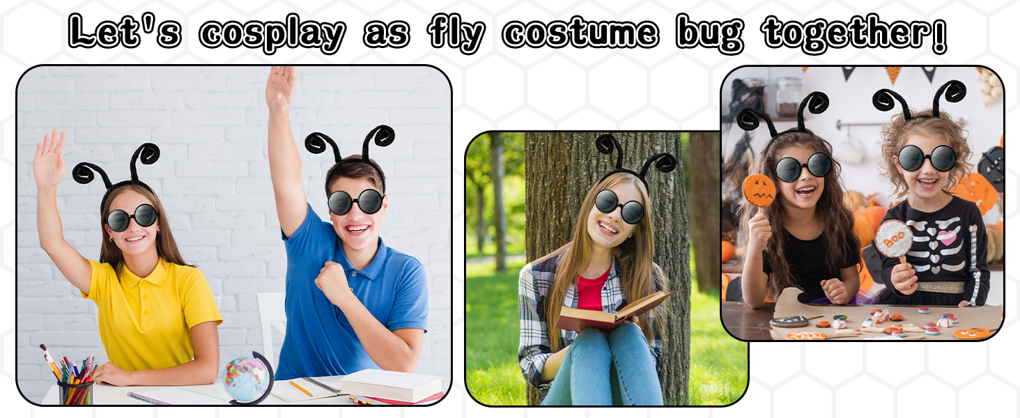 PACKAGE INCLUDES: The product includes 4 headbands and 4 glasses. You will have four sets of fly costume bug accessories to complete your fly, insect, bug, etc. costume