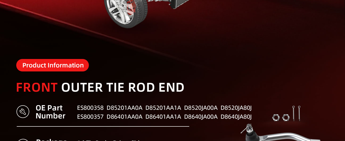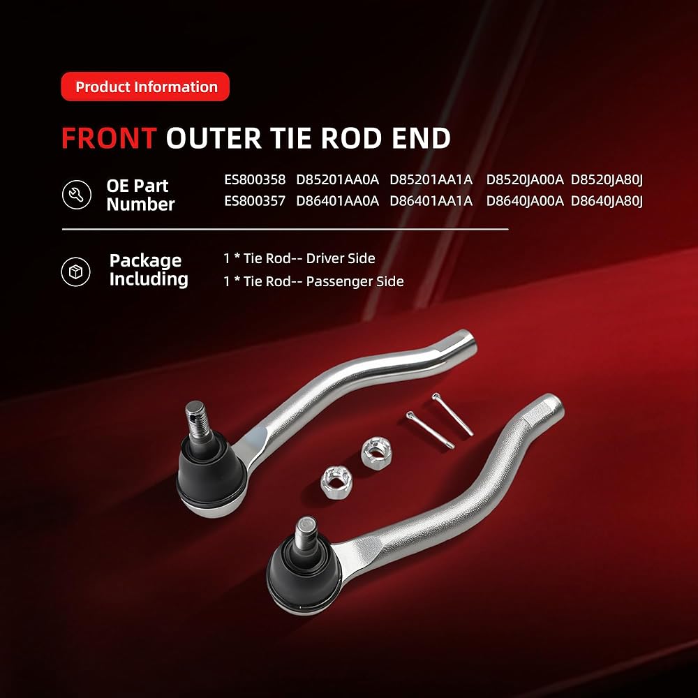 Front Outer Tie Rod End for Nissan Maxima 2009-2018, for Altima 2007-2015, for Murano 2009-2012, Driver and Passenger Side, OE D8520JA80J, ES800357, ES800358, D86401AA0A, D86401AA1A