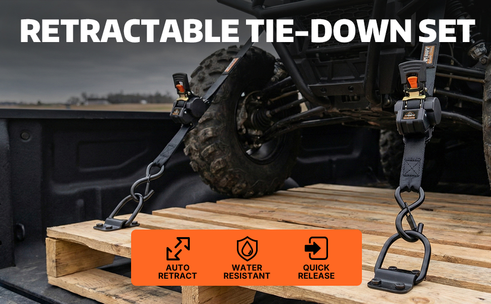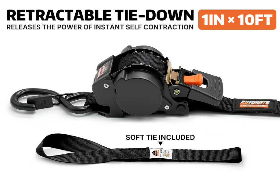 SELF RETRACTING STRAP - Our retractable ratchet straps is automatically recycled. Just press a button and the excess straps can be recycled stores on the inner spool, improving work efficiency