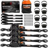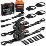 INCLUDES GREAT ACCESSORIES - Our automatic ratchet straps are equipped with (4) soft loop tie downs, (8)d ring tie down anchor,and (32) screws,ideal for creating secure anchor points on roof racks, truck beds, handlebars, and more, ensuring a versatile and reliable tie-down solution.