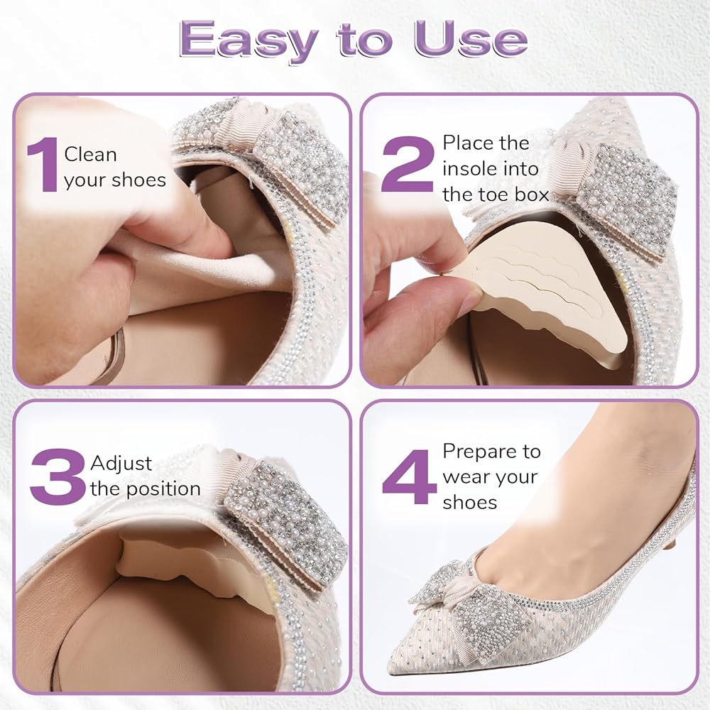 Easy to Use: These insoles feature a convenient self-adhesive design. Simply peel off the protective film and stick them directly to the inside of your shoe. They are non-slip and effortless. Furthermore, the adjustable toe cap and other padding pads can be easily trimmed with scissors to customize the size and shape, perfectly fitting various shoe styles
