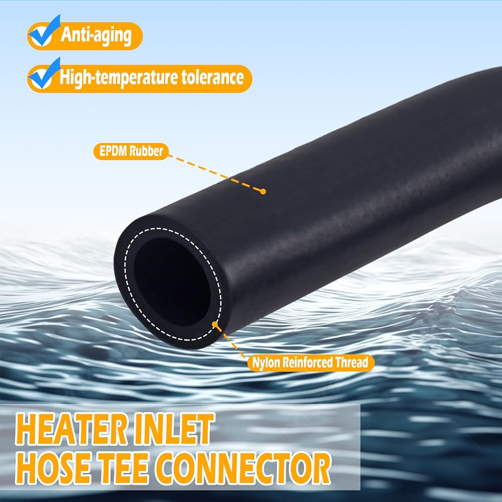 Packing List: 2 x HVAC Heater Inlet Hose Tee Connector, 1 x Tee Connector Hose, 1 x Clamp
