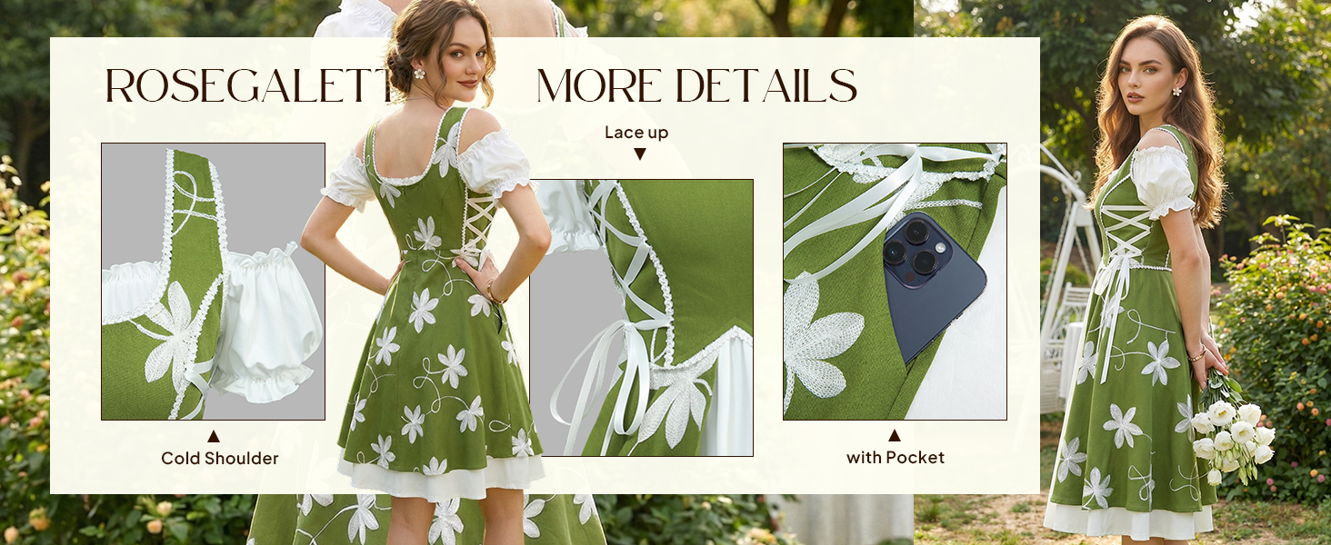 Occassion: The milkmaid dress is perfect for any occasion, such as spring outings, summer vacations. This irish renaissance dress women effortlessly transitions from casual outings to special events, offering both charm and sophistication.