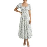 Feature: This fairy midi dress featuring short puff sleeves with lace trim, perfect for women seeking a delicate and playful look for any events. The floral embroidery pattern, short a line ruffle dress adds a stylish yet graceful touch.