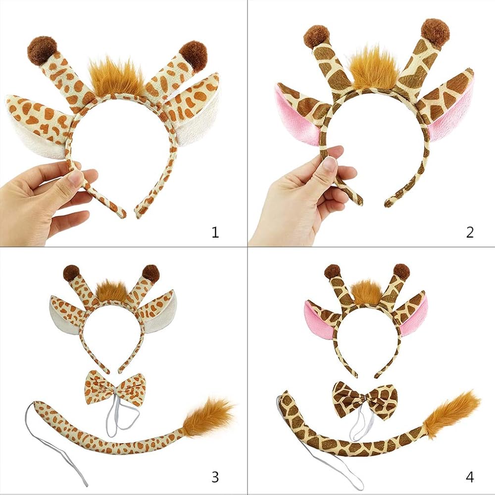 Playful Safari Style: Transform any outfit into a wild adventure with this charming giraffe hair hoop and matching tail tie set; features a soft plush giraffe face atop a comfortable plastic headband and a detachable tail with a handy clip for secure attachment