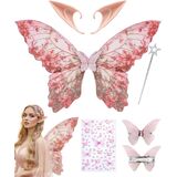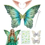 Fairy Costume Accessory : A fairy costume wings cosplay set that includes 1pcs butterfly fairy costume wings, 1 pair of elf ears, and 1pc butterfly face temporary tattoos, 1 fairy wand, Butterfly hair clips, enter a magical world of elves with our fairy costume wings costume set. This is a prop to help you become the focus of the party
