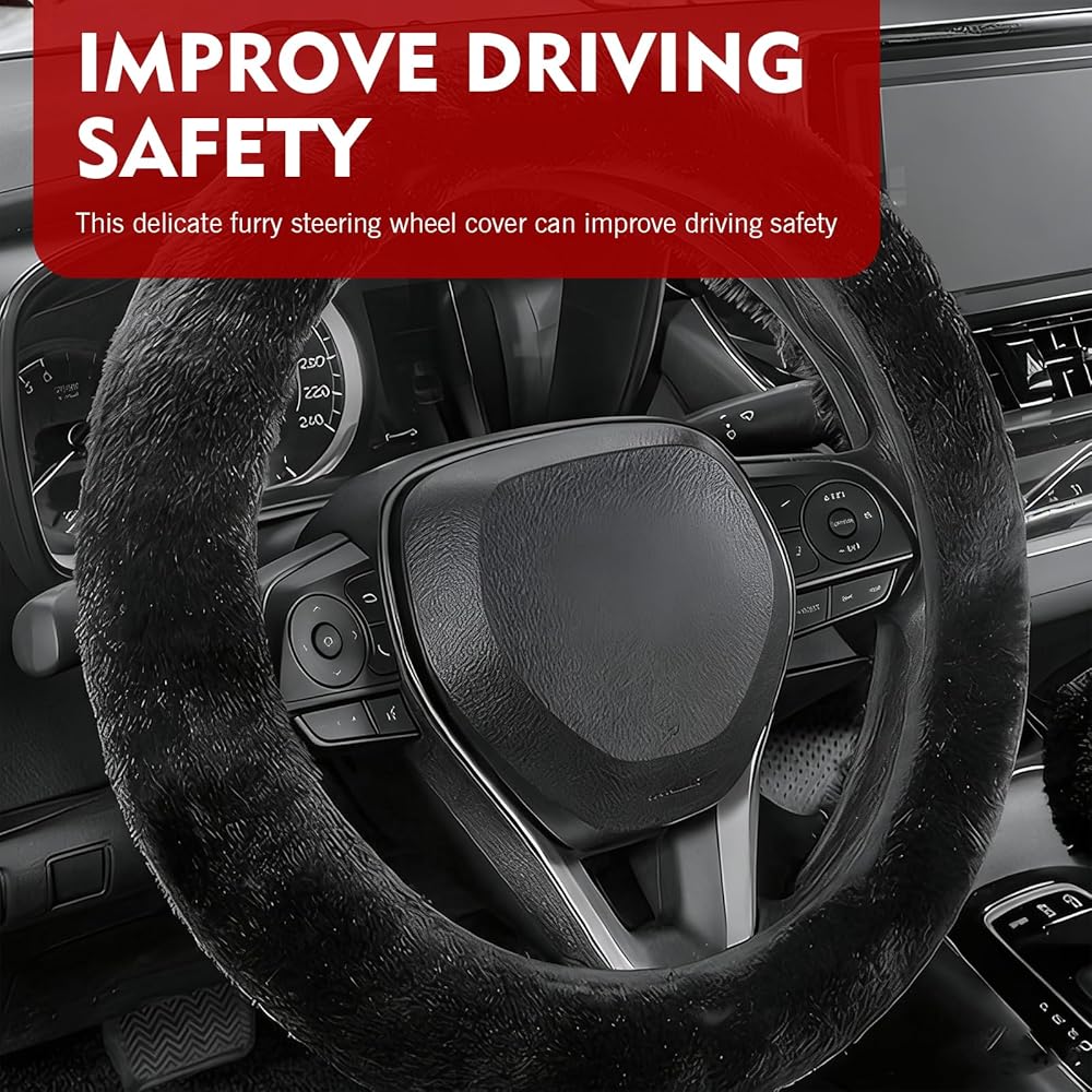 Universal Fuzzy Steering Wheel Cover: Designed with a 14-15 inch inner diameter, this soft cover fits most standard steering wheels, providing a tailored look and feel without compromising grip or control.