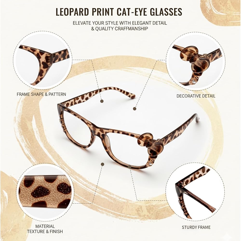 Youthful Aesthetic:Cheetah print glasses designed specifically for teenage girls and young women aged 15-25; The cheetah print patterns appeal to anime enthusiasts and fashion-forward individuals; These glasses complement Y2K retro fashion collections and cosplay costumes