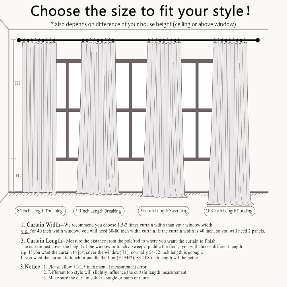Pinch Pleats Top: Featuring 7 double pleated pinch pleats per panel, these curtains offer a more gathered and luxurious look. The pleats are permanently sewn-in for a crisp, tailored finish. You can also easily adjust the pin hook position to modify the length by 1-2 inches for a perfect fit.