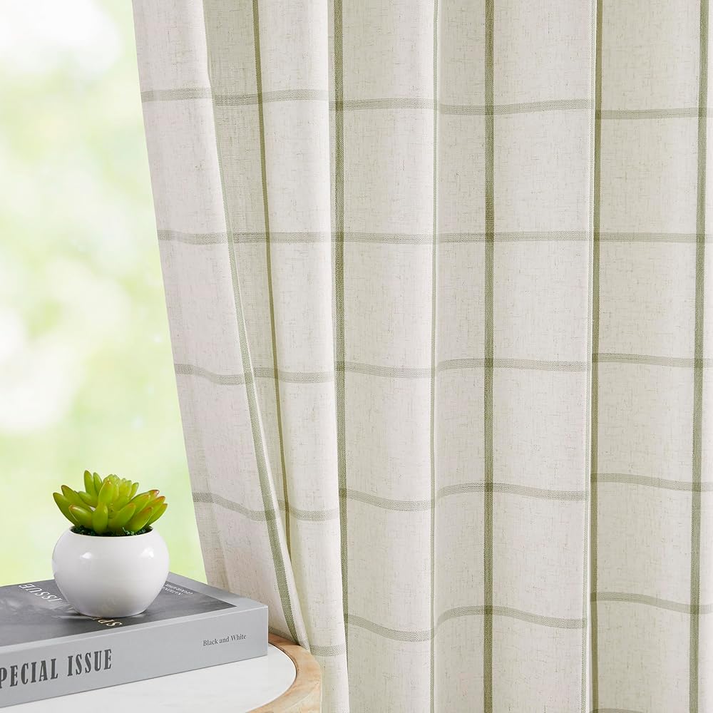 Classic Plaid Design: Our curtains showcase a classic checkered plaid grid pattern with a visible linen weave texture. This natural, rustic design adds a chic, vintage touch to your home while blending seamlessly with modern, traditional, or farmhouse decor styles.