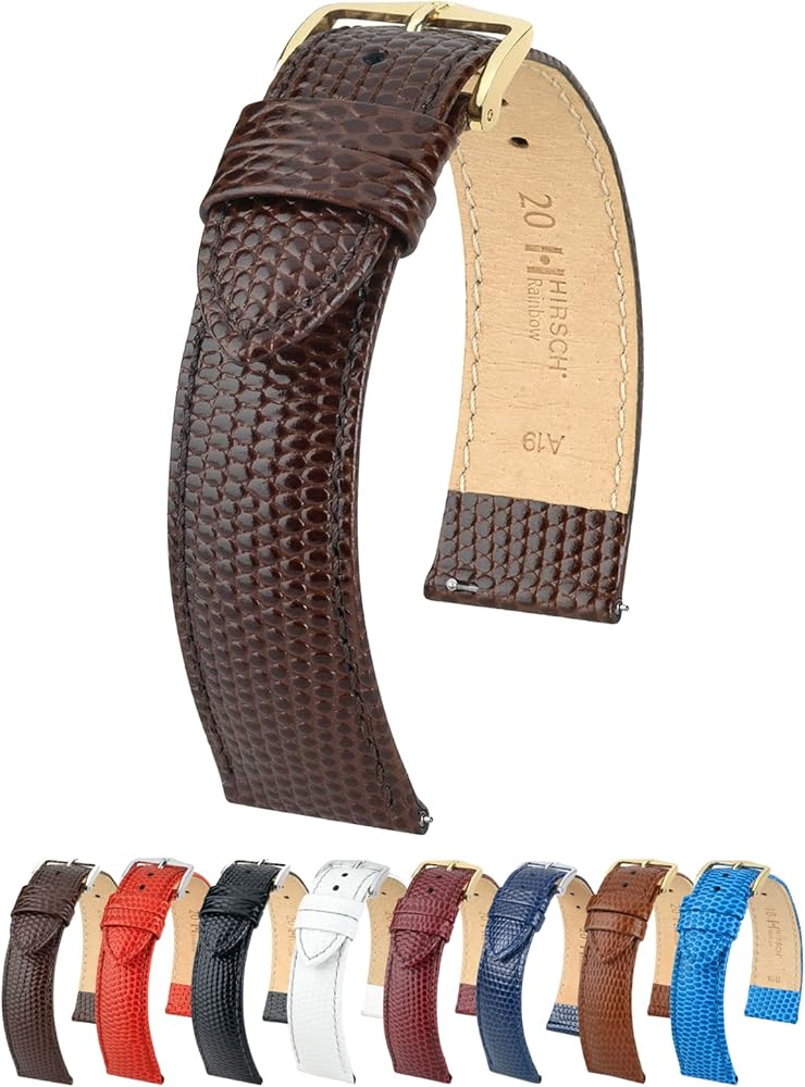 - Hirsch Rainbow Bonded Leather Watch Strap (Brown) with Stainless Steel Gold colored buckle | Band Length (mm) - Medium (110/70) | Attachment / Buckle Width (mm) - 14 / 12